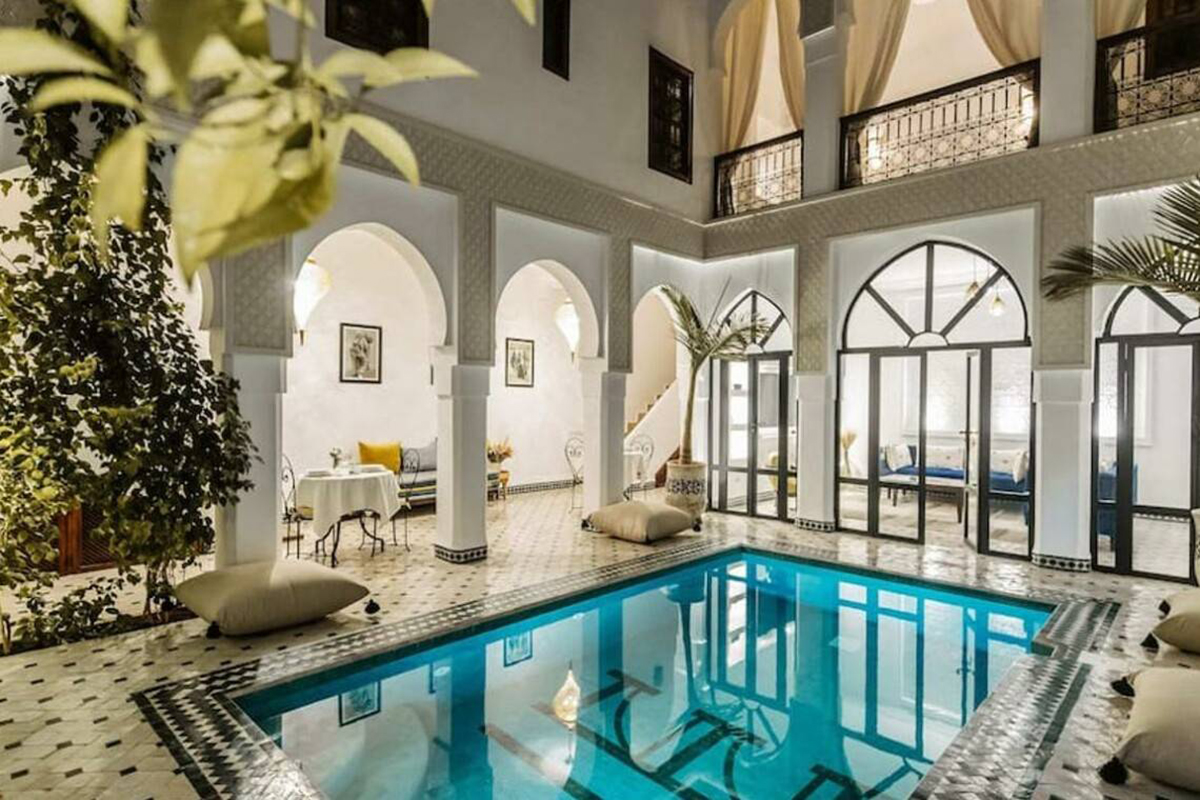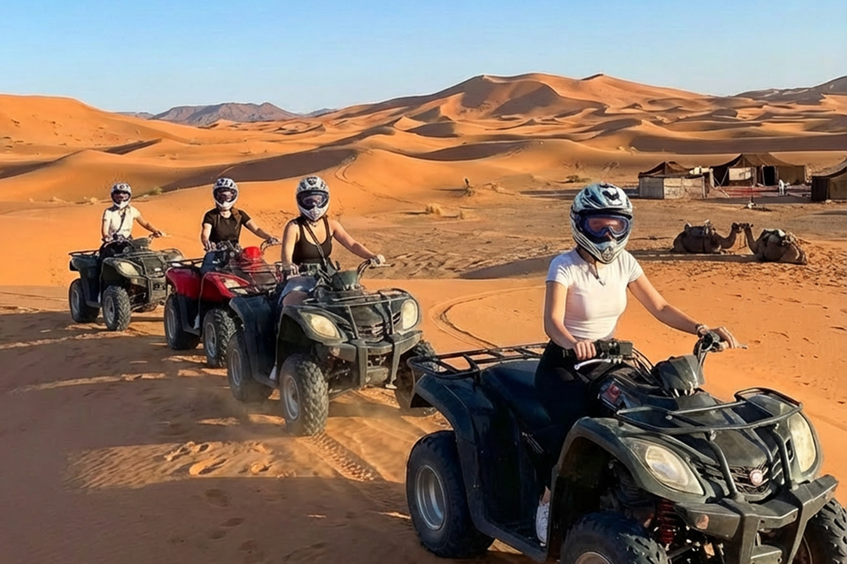 The food is quite simply exceptional! Breakfast is a selection of bread, pancakes, omelette, cheeses, jams, chocolate spread, tea, coffee and juice. Lunch is a very good `picnic` which consists of mint tea, pasta, a stew of some kind (usually pulses), chopped salads, tinned fish, bread and fruit desert. Dinner consists of three courses: Soup starter, main course (Tajine, Cuscus or similar traditional Berber food) and fruit desert. Camomile tea is also served after dinner.